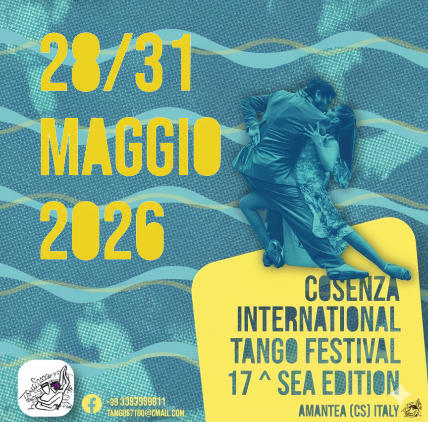 Da giovedì 28 a domenica 31 maggio 2026 Amantea sarà una cornice perfetta per il ritmo del Tango e dell’abbraccio: è in programma la diciassettesima edizione del Cosenza International Tango Festival – Sea Edition, un appuntamento ormai iconico per gli appassionati di tango argentino.